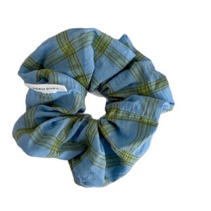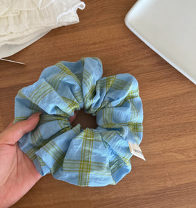 優しい韓国風チェック柄ステッチヘアゴム青と緑の新しい高級ボールヘアゴム気質帽子