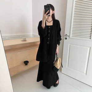 复古名媛风毛衣三件套女秋冬新款韩版吊带背心针织开衫半身裙套装