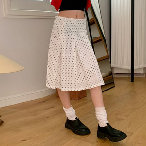夏季显瘦百搭A字褶皱半身裙文艺复古小波点高腰包臀中长裙女显瘦