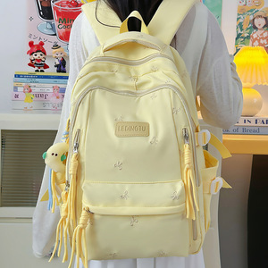 大容量时尚休闲简约背包蝴蝶结百搭男女高中生书包女校园双肩包