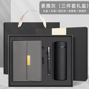 素雅灰+笔+保温杯+U盘+礼盒套装