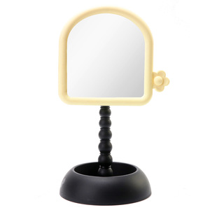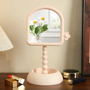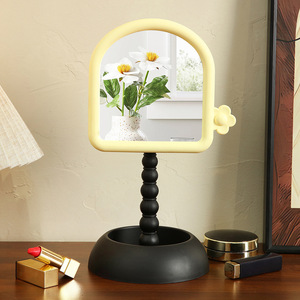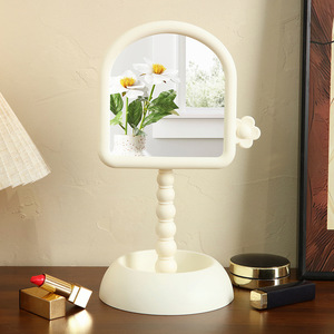 桌面珍珠化妆镜学生宿舍台式可旋转带底座美妆补妆梳妆方形公主镜