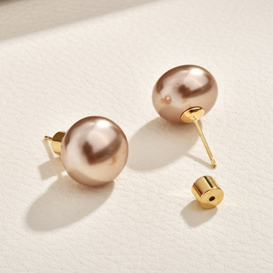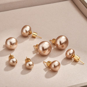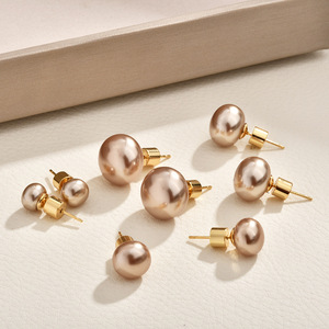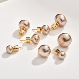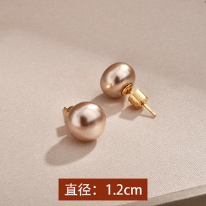 2025爆款法式香槟色馒头珍珠时尚耳钉轻奢高级感气质优雅耳环耳饰
