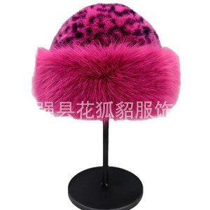 2025批发新款女秋冬豹纹蒙古帽仿皮草时尚保暖渔夫帽仿貂毛水桶帽