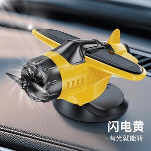 新款车载太阳能可旋转飞机汽车摆件创意车内中控台装饰品汽车用品
