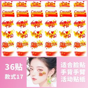 迷彩爱国纹身贴彩虹我爱中国脸贴 国庆学生运动会比赛活动手臂贴