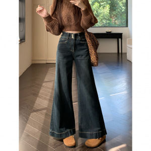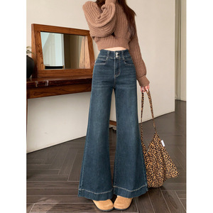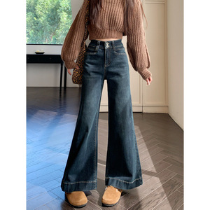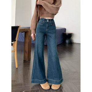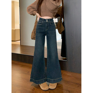 新品2025宽松微喇牛仔长裤女两粒扣设计感大裤脚拖地阔腿裤子