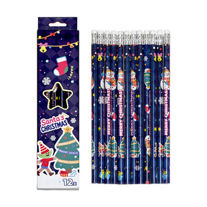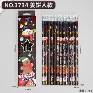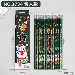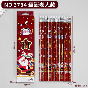 卡通可爱圣诞铅笔小学生儿童原木HB铅笔带橡皮头文具学习用品批发