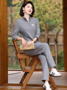 运动服妈妈装套装40-60岁纯色时尚新品女2024中年女士秋装两件套
