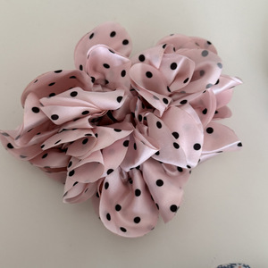 2#ピンクと黒の水玉模様のヘアゴム