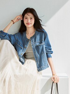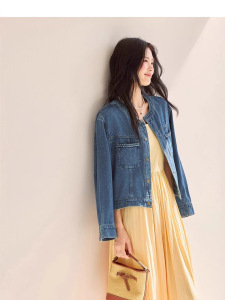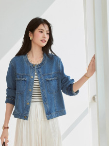 伊*L时尚全棉无领小香风牛仔外套2025秋季新款短外套女1G8911131
