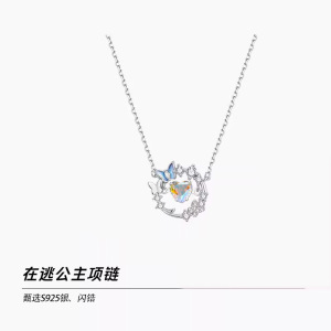 在逃公主项链女S925纯银爱心蝴蝶锁骨链小众设计高级感送女友礼物