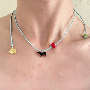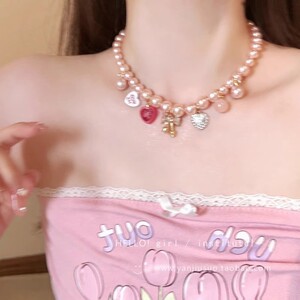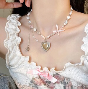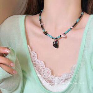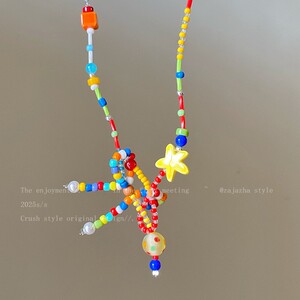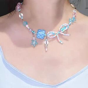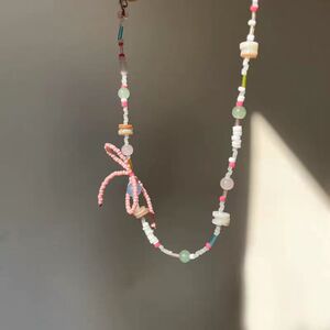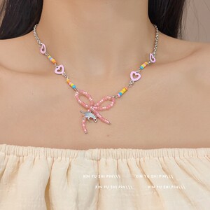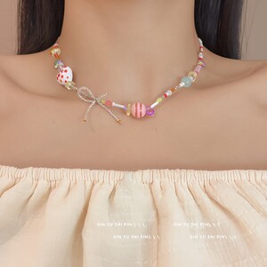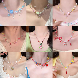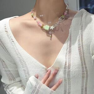 多巴胺彩色串珠蝴蝶结项链夏日旅游度假拍照的锁骨链甜美百搭颈链