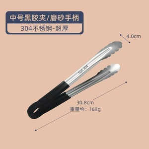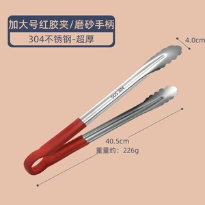 304不锈钢加厚食品夹子粗麻胶防滑防烫食物夹烧烤夹面包夹牛排夹