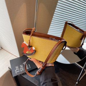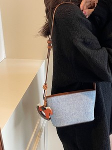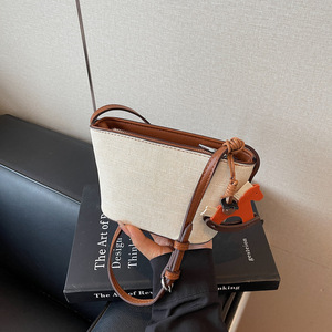 外贸撞色小众包包女2025新款复古百搭斜挎包高级感超火手提水桶包