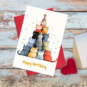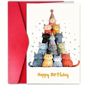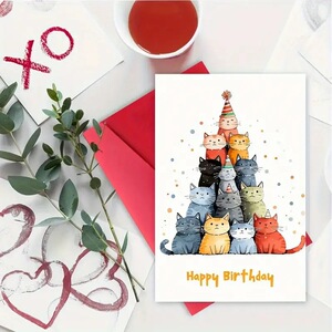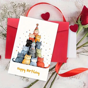 封筒付きグリーティングカード Amazon ベストセラー猫誕生日グリーティングカード ハイエンド折りたたみポストカード 祝福感謝カード