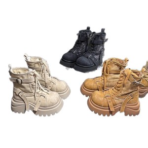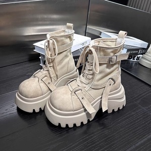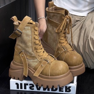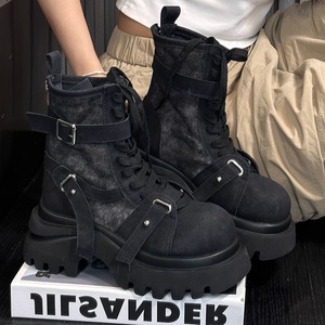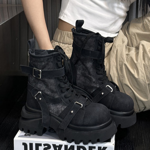 欧货真皮牛仔大头松糕厚底马丁靴女2025新款小个子增高机车靴女