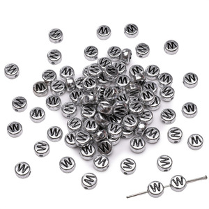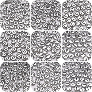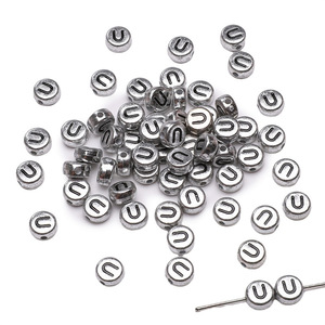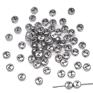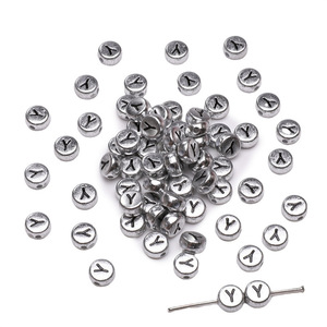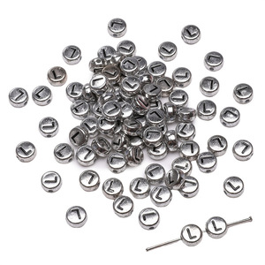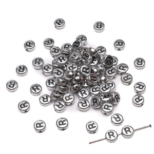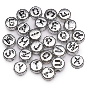 银色亚克力英文字母珠散珠DIY手工制作串珠手链项链饰品配件串珠