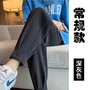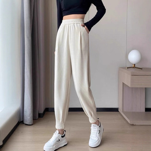 雪尼尔灯芯绒哈伦裤女秋冬加绒加厚新款高腰束脚宽松显瘦休闲卫裤