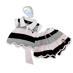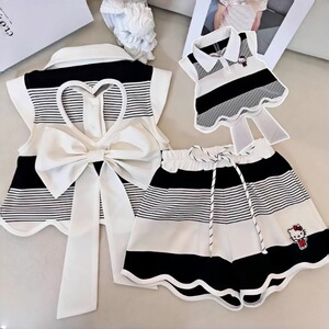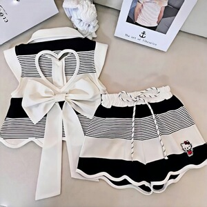 2025夏季新款女童甜美可爱套装中大童洋气条纹爱心上衣短裤两件套