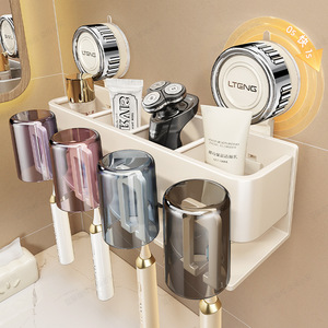 吸盘牙刷置物架多功能家用漱口杯免打孔卫生间壁挂式剃须刀收纳架