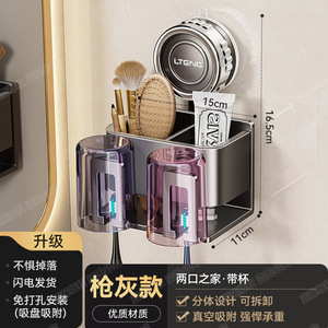 枪灰吸盘牙刷架两口之家带两杯