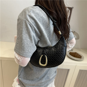 批发小众编织纹手提新月包女包2025夏新款拼接洋气单肩包潮腋下包