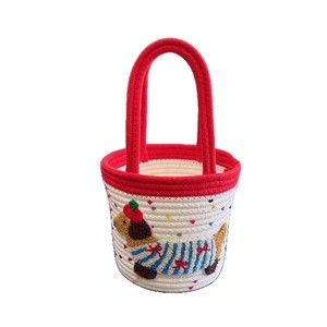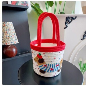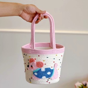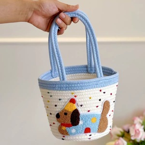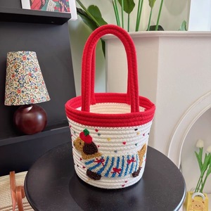 ins风棉绳编织收纳篮大容量手提腊肠狗编织包家居简约现代收纳筐