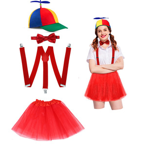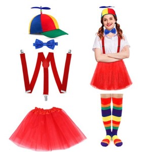 螺旋桨帽彩虹小丑帽 Y 背式背带领结条纹袜子5件套装成人搞笑装扮