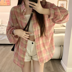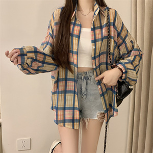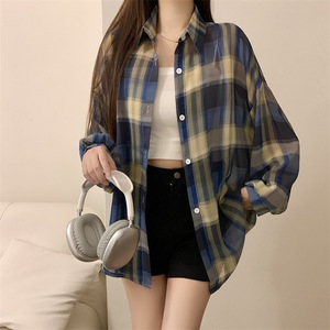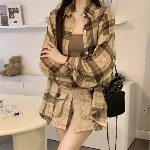 新しいアメリカンチェック柄シャツ女性のための 2025 夏の新しい怠惰なスタイルのシャツジャケット日焼け止めトップトレンディ