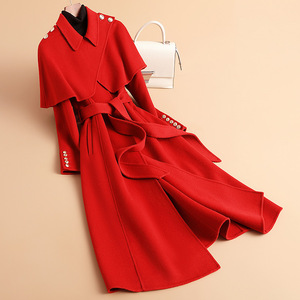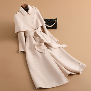 2025年秋冬季新款高级感斗篷可拆卸双面羊毛大衣女士外套长款大衣