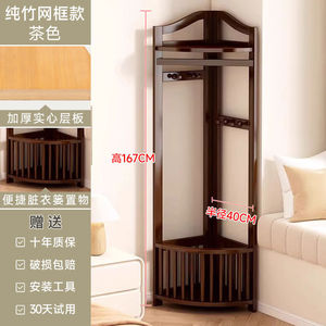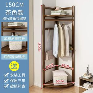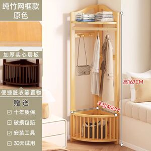 转角衣帽架落地卧室家用多功能置物收纳架墙角简易立式实木挂衣架