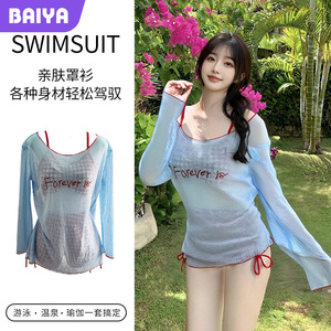 沙滩度假泳衣女2025高级感分体三件套纯欲风长袖遮肉显瘦泳装批发