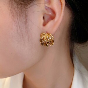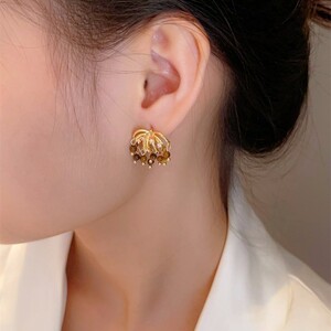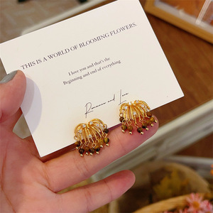 美拉德虎眼石烟花流苏小耳环秋冬新款高级感耳坠气质百搭时尚耳饰