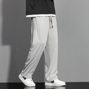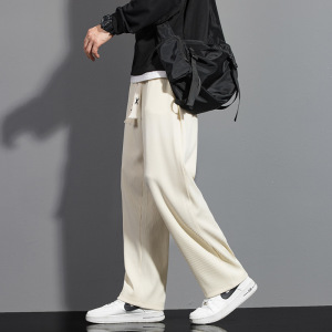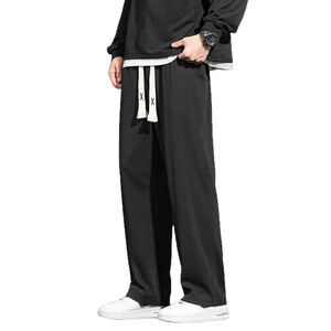 パンツメンズ夏 2025 新しいアメリカンストレートクールアイスシルクワイドレッグカジュアルパンツルーズ大きいサイズスポーツパンツ
