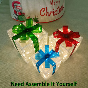 跨境新款3件套DIY组装会发光圣诞礼物盒8种灯光模式圣诞节装饰灯