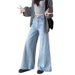 2025新品 宽松直筒牛仔长裤女大裤脚阔腿拖地喇叭裤子