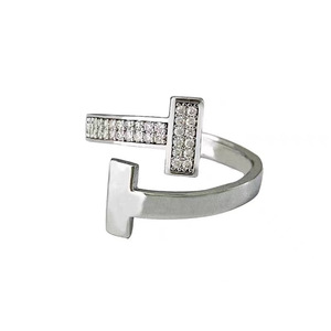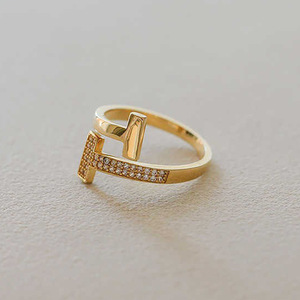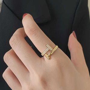 抖音高品质满钻双T开口戒指女ins冷淡风个性气质时尚不掉色指环