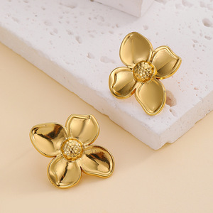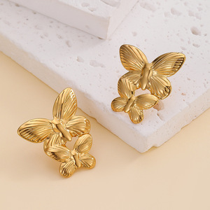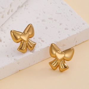 跨境INS风不锈钢蝴蝶结耳钉高级感18K金个性轻奢蝴蝶耳饰耳环女