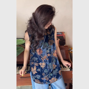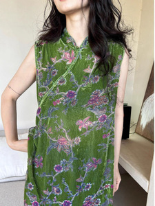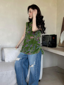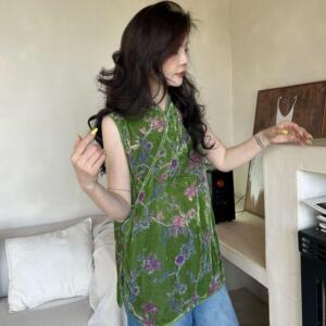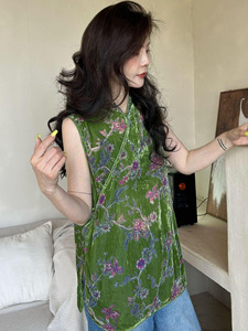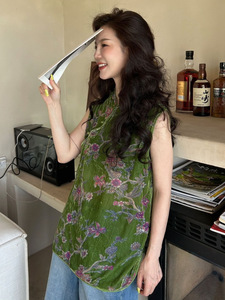 新中式国风女装绿色提花无袖盘扣衬衫上衣2025新款夏季巨好看小衫