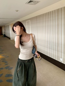 SUNONEOE U领纯色正肩短袖T恤女早秋韩版修身显瘦高级感薄款上衣