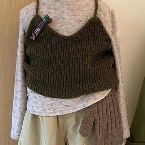 韩国童装女童纯色叠穿针织吊带2025秋季新款休闲百搭阔腿裤三件套