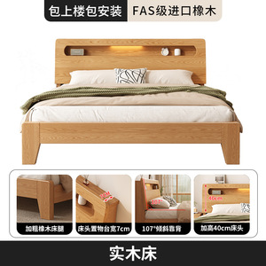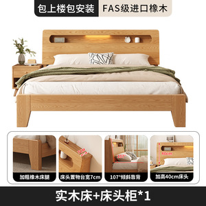橡木床+20cm弹簧床垫+床头柜*1【包上楼+安装】