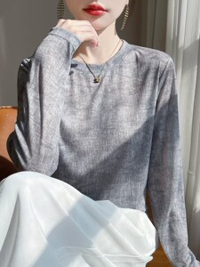 秋季女装网纱打底学院风罩衫外套圆领天丝莱赛尔内搭长袖薄纱上衣