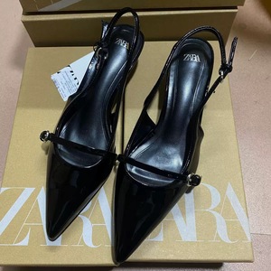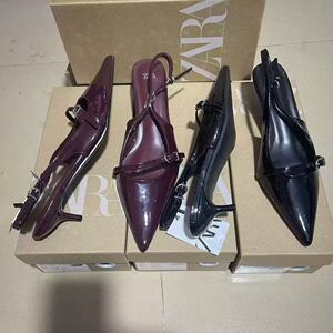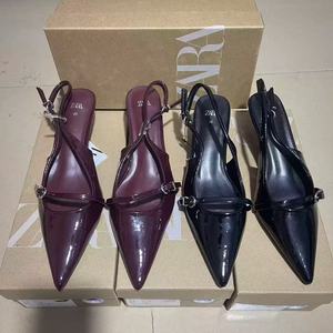 ZA外贸女鞋新款一字带尖头浅口法式露跟搭扣高跟鞋拉带细跟凉鞋女