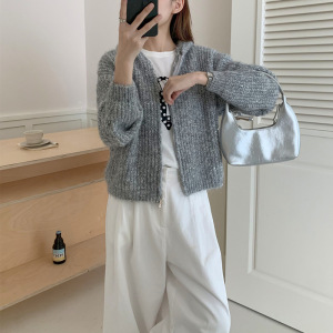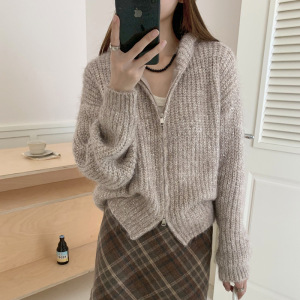 秋冬新款连帽拉链针织外套慵懒风宽松外穿毛衣开衫女休闲百搭上衣