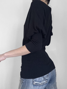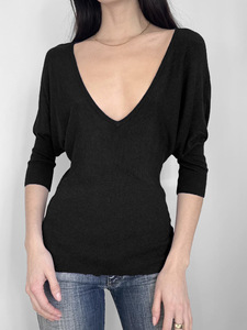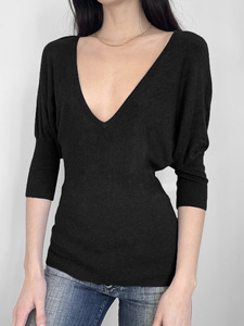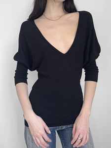 秋季时尚新品韩风深V领针织衫收腰休闲慵懒风蝙蝠袖气质长袖上衣