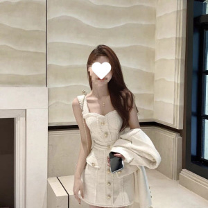 小香风套装裙两件套秋夏秋重工编织毛边金扣小香连衣裙短外套装女