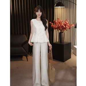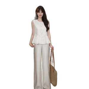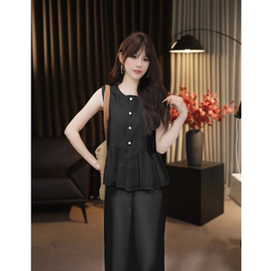 女士夏季薄款套装2025新款法式无袖背心上衣休闲阔腿长裤子两件套