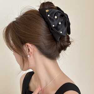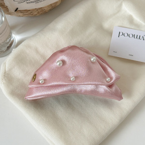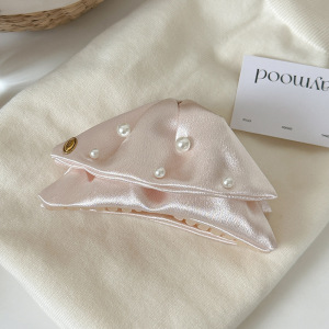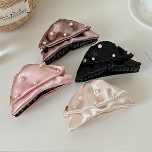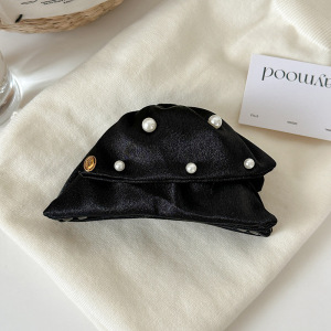 法式复古钉珠缎面双层抓夹气质高级感简约百搭发夹盘发鲨鱼夹发饰